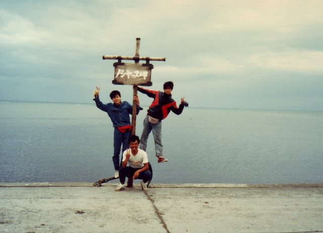 ノシャップ岬、紋別で一緒だったふたりと会いました。 この後も何度か再会してました。 再会というか皆、左回りだったので行動パターンが同じだったのです。 ひとりはチャリダーなんですけど、なぜペースが一緒だったんだろう。。。