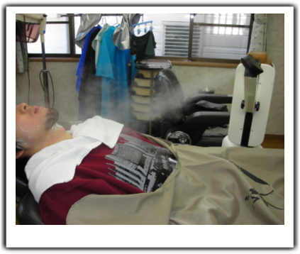 髭剃りの時、美顔の時、蒸気をあてながら行います。