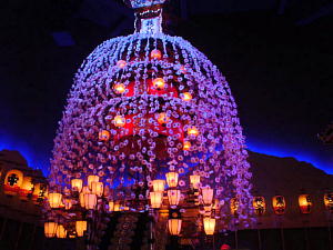 秩父まつり会館の中にある、秩父夜祭に使う笠鉾と裏画面の屋台で、となりの映写室で夜祭を見て、影絵を見る。