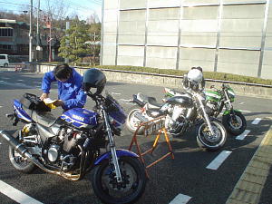 今年初のツーリングで、何と前年度までは、カワサキW650を乗っていた能勢くんが、密かに、XJ-R1300を乗って来た!