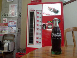 温泉に入った後に、懐かしい瓶のコカコーラ!