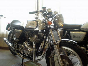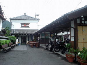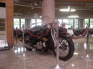 中には、いろいろなバイクと、カドヤ店や下の階にレストランと温泉がある。