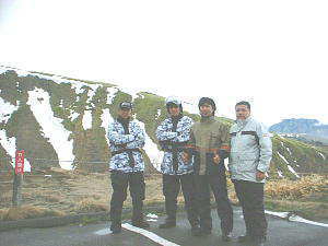 初めてみんなでレインウエアー走行、途中で、日本カモシカに遭遇したり、雲海が見れたりやっぱり良い道路だな。