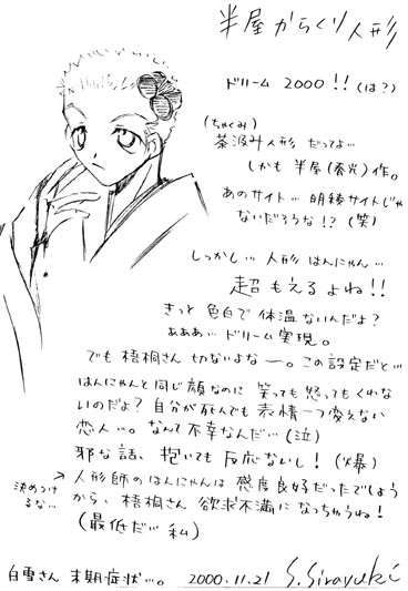 去年の夏コミで無料配布した『白い情熱1』というオマケ本に載っていた落書きです。
