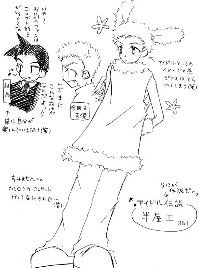 確かにギャグで考えた馬鹿馬鹿しい話なのですが、卒業後に人の下でへこへこ働く半屋君、というのが心底嫌!なので、それならいっそアイドルにでもなってくれた方が…。